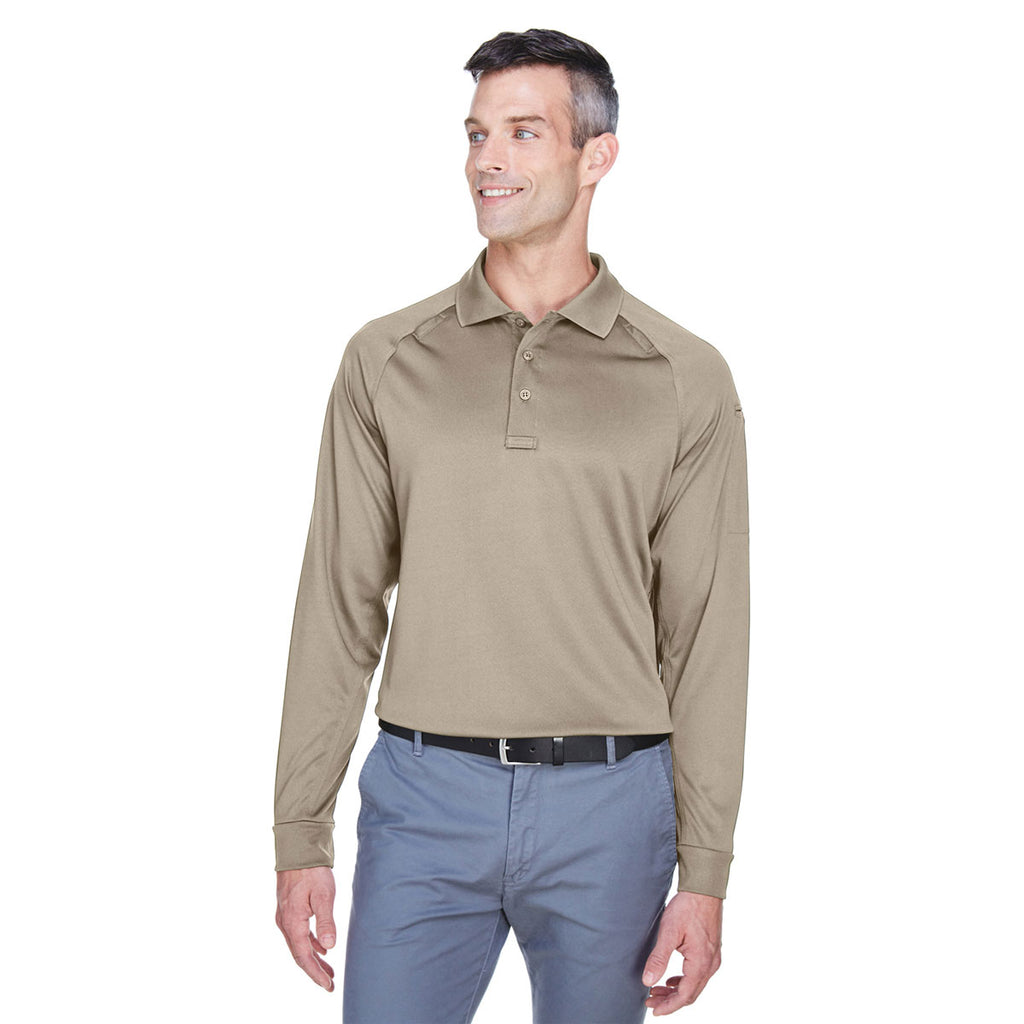 Harriton Men's Desert Khaki Tactical Long-Sleeve Performance Polo