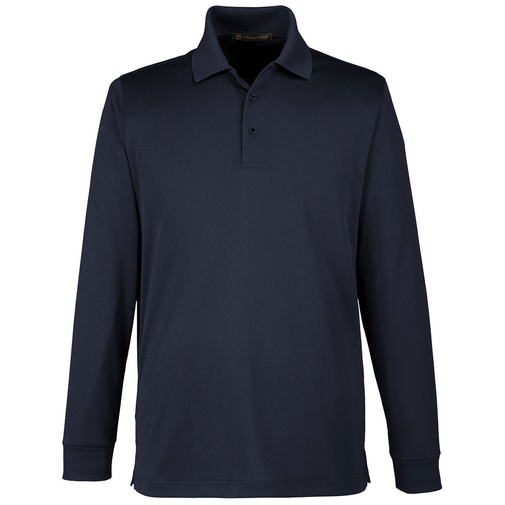 Choose custom embroidery for the Harriton Men's Dark Navy Tall Advantage Snag Protection Plus Long Sleeve Polo to create employee apparel that will stand up to a day of hard work, but in tall size options. This long sleeve polo can also be elevated to corporate apparel when paired with a jacket or worn alone for out of the office meetings or as employee uniforms. Made of 100% polyester snag protection plus jersey with moisture wicking and anti-microbial properties this polo is great no matter what your day has in store. The functionality of this single polo is so immense that every wardrobe can benefit from this piece as a custom gift.Highlights