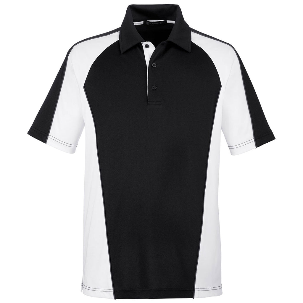 Harriton Men's Black/White/Dark Charcoal Advantage Snag Protection Plus Colorblock Polo