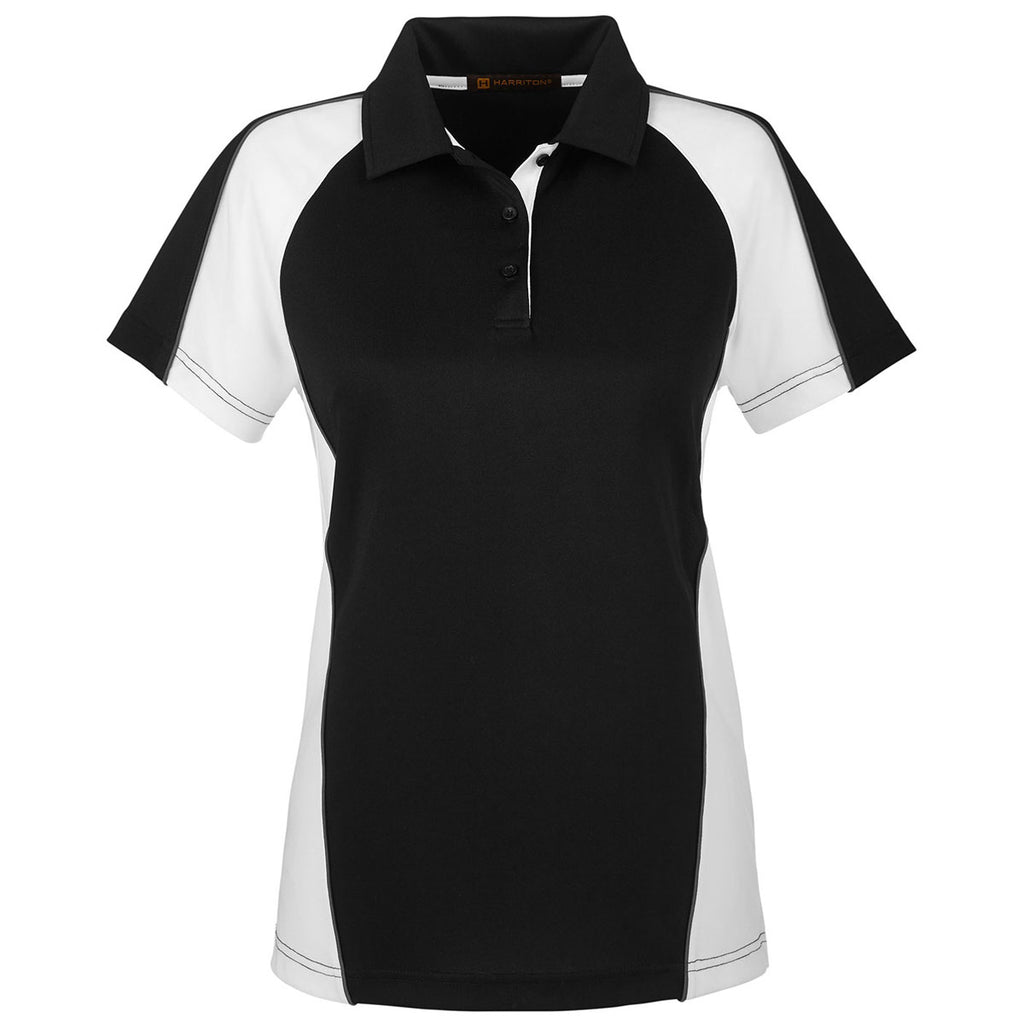 Harriton Women's Black/White/Dark Charcoal Advantage Snag Protection Plus Colorblock Polo