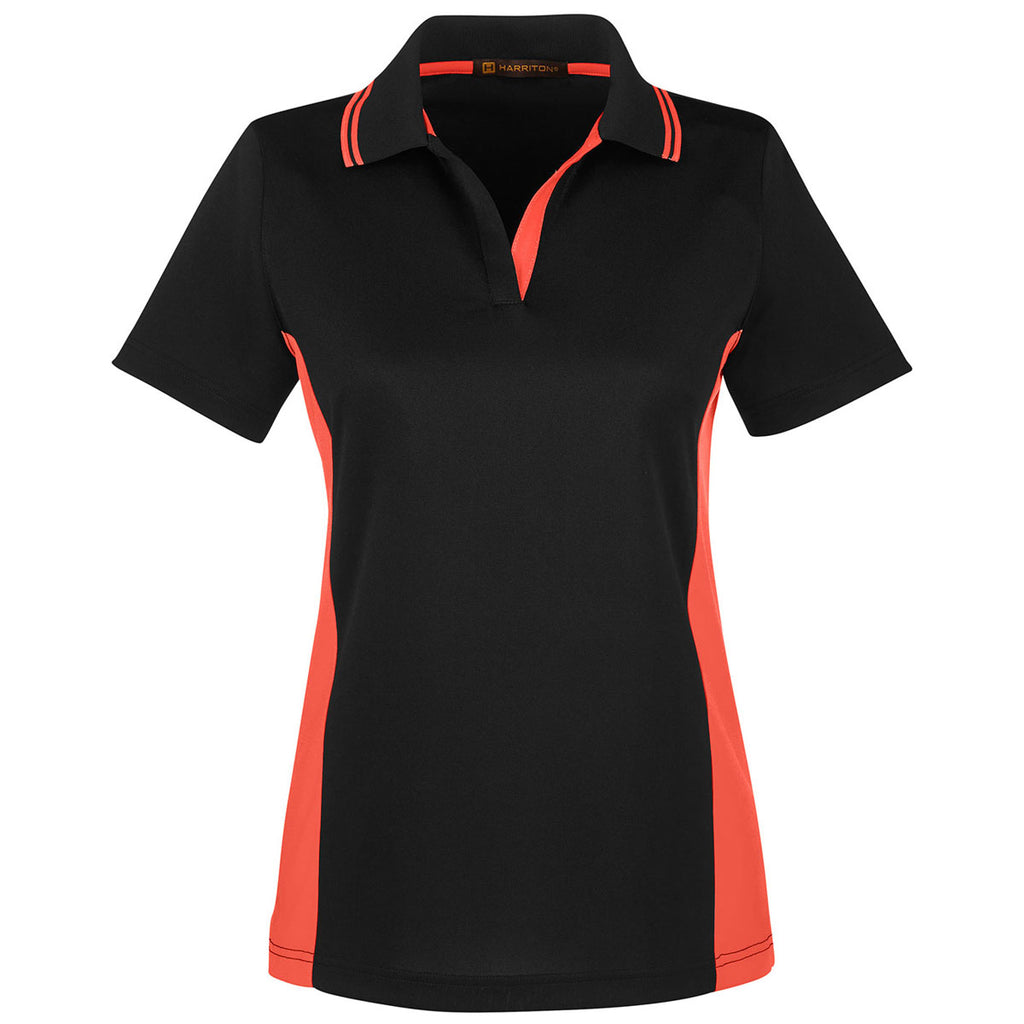 Harriton Women's Black/Team Orange Flash Snag Protection Plus Colorblock Polo