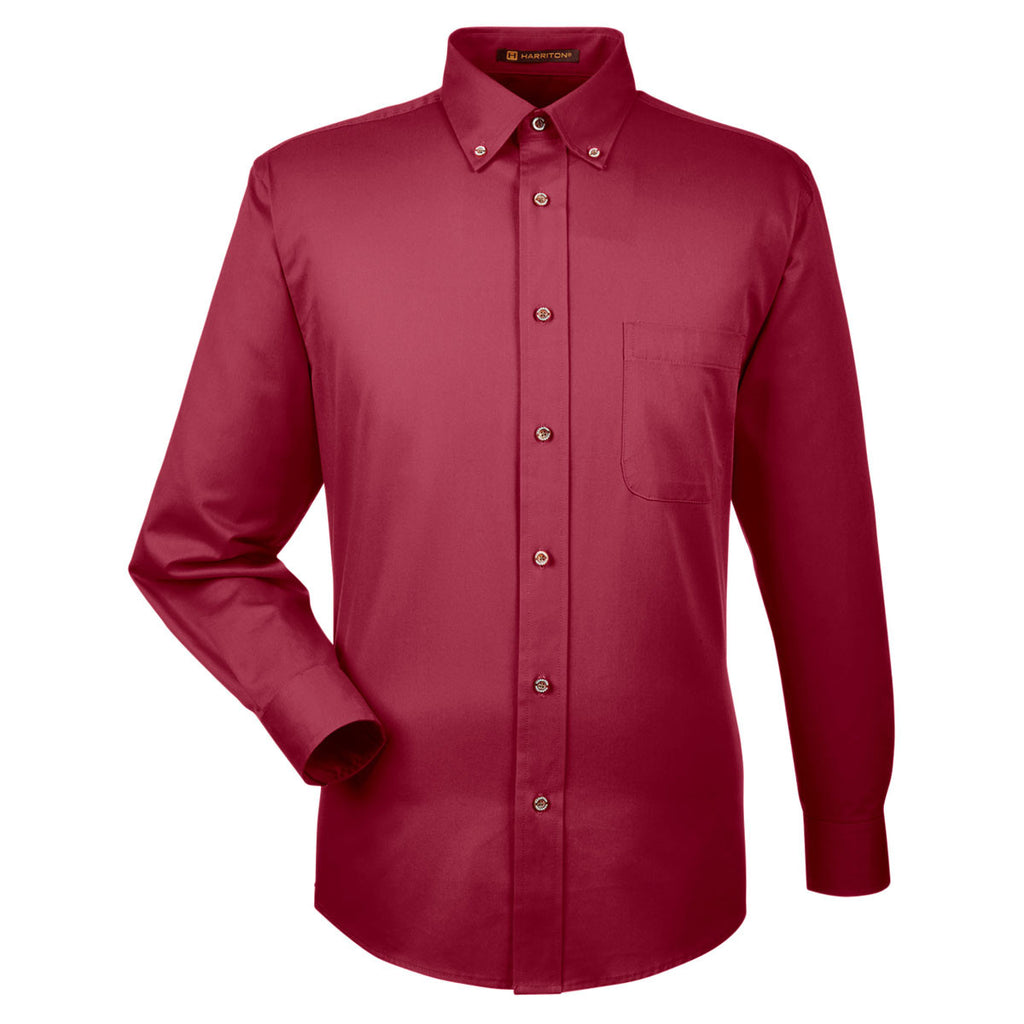 Harriton Men's Wine Easy Blend Long-Sleeve Twill Shirt with Stain-Release