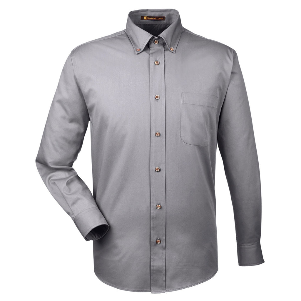 Harriton Men's Dark Grey Easy Blend Long-Sleeve Twill Shirt with Stain-Release