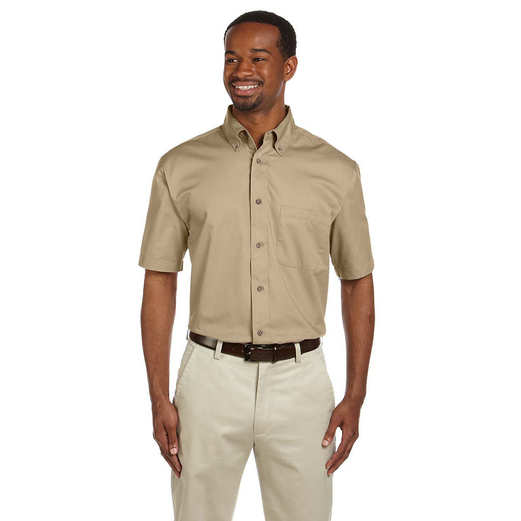 Harriton Men's Stone Easy Blend Short-Sleeve Twill Shirt with Stain-Release