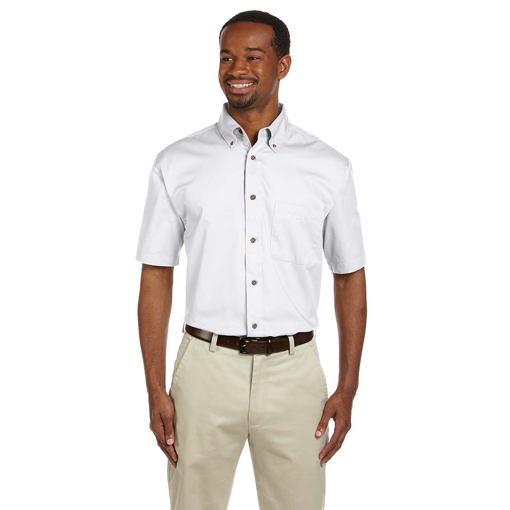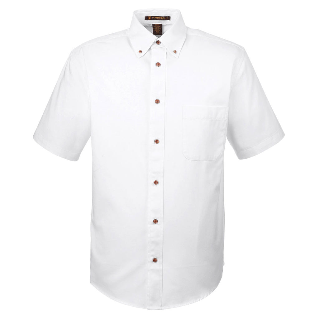 Harriton Men's White Easy Blend Short-Sleeve Twill Shirt with Stain-Release