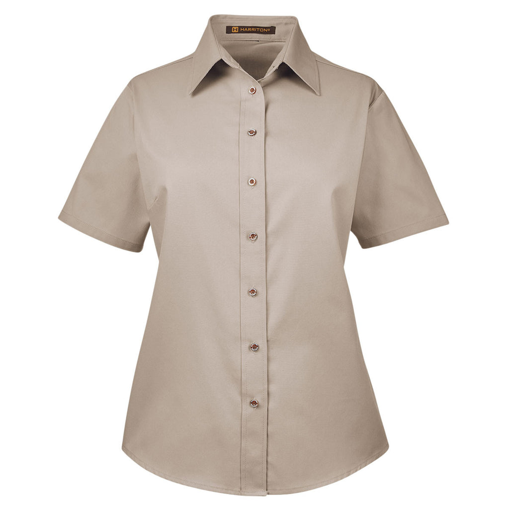 Harriton Women's Stone Easy Blend Short-Sleeve Twill Shirt with Stain-Release