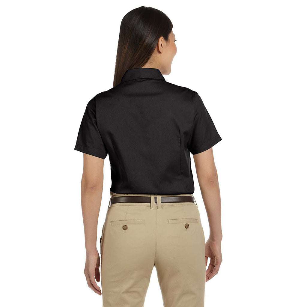 Harriton Women's Black Easy Blend Short-Sleeve Twill Shirt with Stain-Release