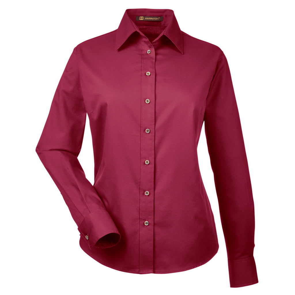 Harriton Women's Wine Easy Blend Long-Sleeve Twill Shirt with Stain-Release