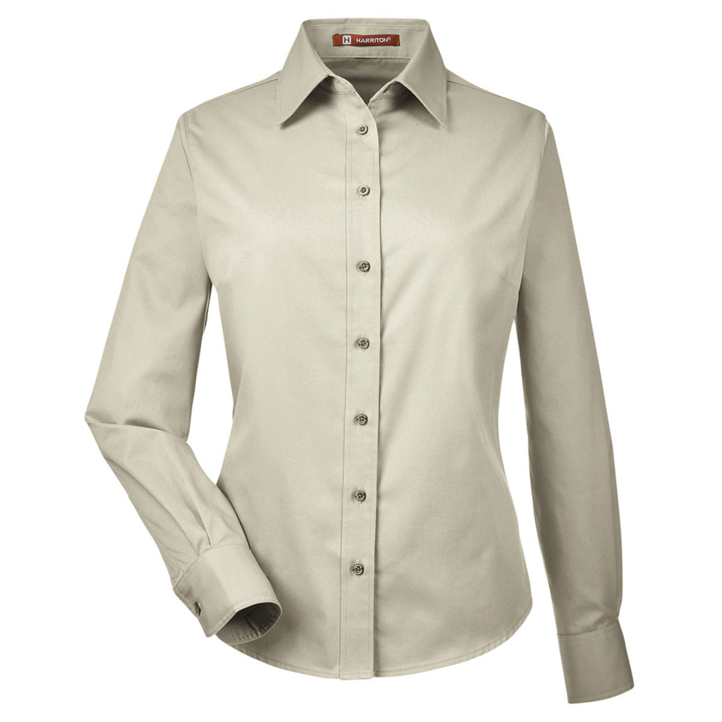 Harriton Women's Creme Easy Blend Long-Sleeve Twill Shirt with Stain-Release
