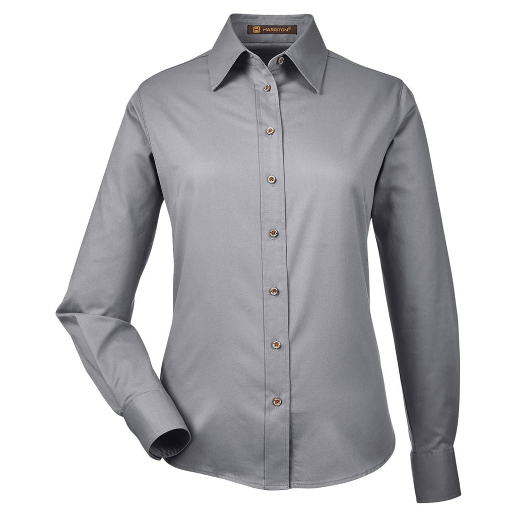 Harriton Women's Dark Grey Easy Blend Long-Sleeve Twill Shirt with Stain-Release