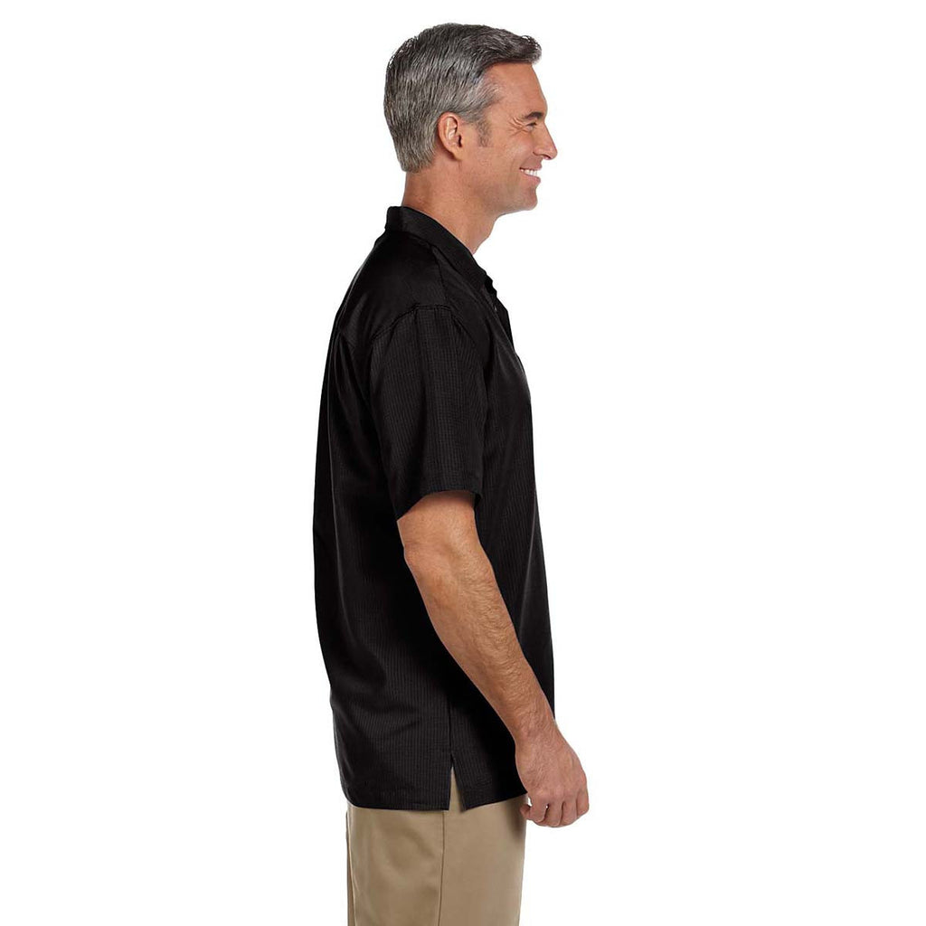 Finely textured to deliver a sleek design appearance, the Harriton Men's Black Barbados Textured Camp Shirt features 70% rayon and 30% polyester to create an indestructible corporate garment. Rayon and polyester combine to prevent rips and tears from rendering the multi-purpose shirt to the trash heap. Sand washed to create a soft feel, the Textured Camp Shirt never wrinkles to give you a go to apparel for wearing at upscale corporate events. Just remember to add your corporate logo to promote your company to professional peers. The special shadow weave creates a dazzling design that gets you noticed everywhere you go when you run errands.Corresponding Women's Style: Harriton Women's Black Barbados Textured Camp Shirt