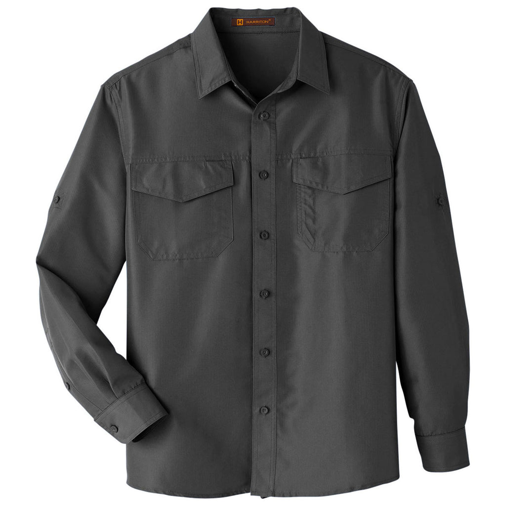 Harriton Men's Dark Charcoal Key West Long-Sleeve Performance Staff Shirt