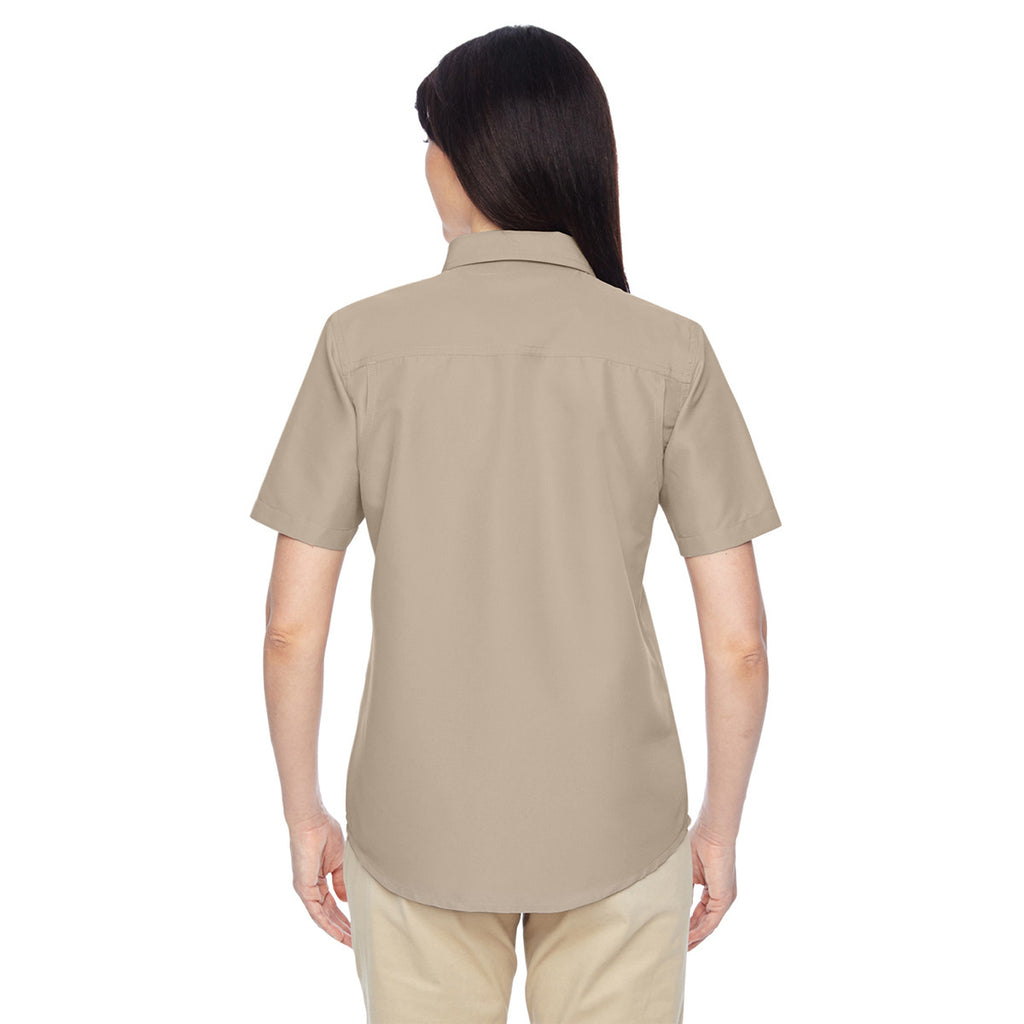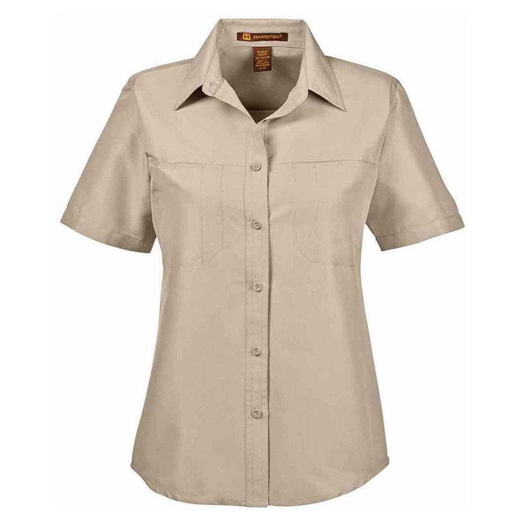Harriton Women's Khaki Key West Short-Sleeve Performance Staff Shirt