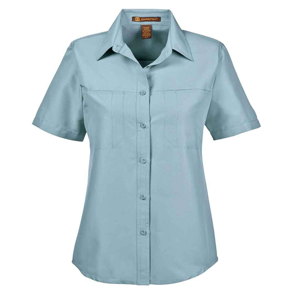 Harriton Women's Cloud Blue Key West Short-Sleeve Performance Staff Shirt