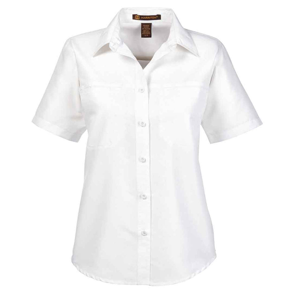 Harriton Women's White Key West Short-Sleeve Performance Staff Shirt
