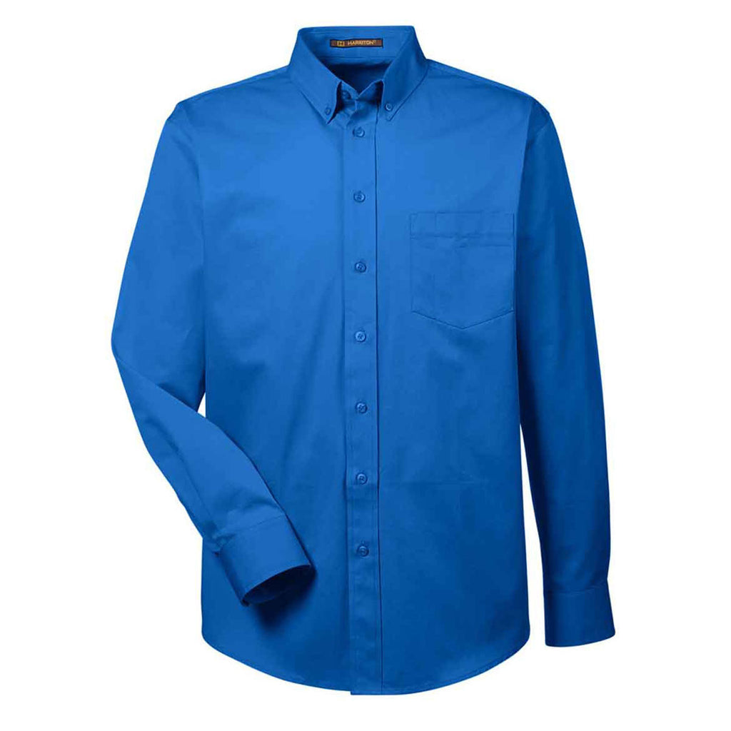 Harriton Men's French Blue Foundation 100% Cotton Long-Sleeve Twill Shirt with Teflon