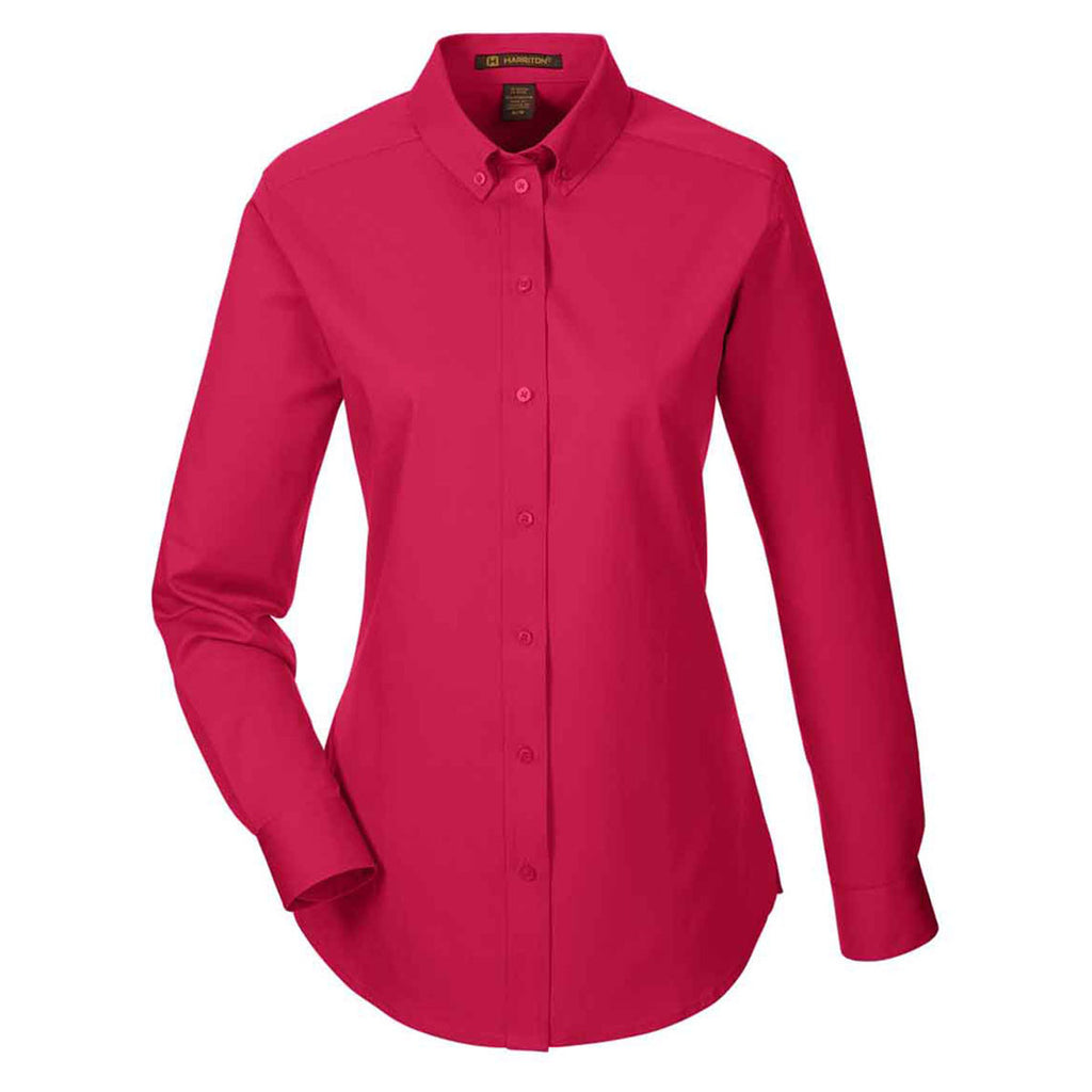 Harriton Women's Red Foundation 100% Cotton Long-Sleeve Twill Shirt with Teflon
