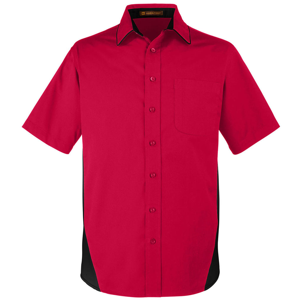 Harriton Men's Red/Black Flash Colorblock Short Sleeve Shirt