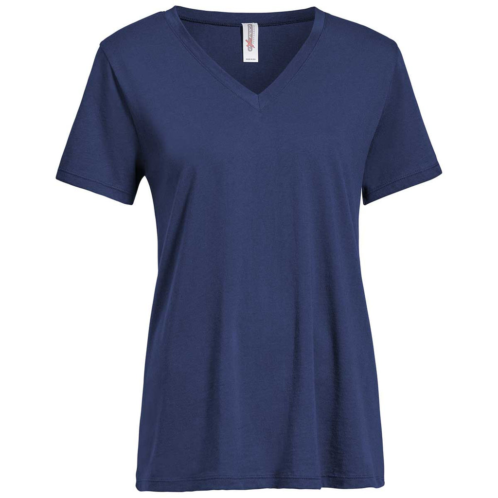 Make the female members on your high achieving company team stand out for all the right fashion reasons by designating the Expert Women's Navy American Moca V-Neck Tee the official employee uniform. The versatile tee works fashionably well as a softball uniform, as well as a gift you hand out for attendees at the next industry trade show. Enjoy supreme comfort with the relaxed fit of the short sleeve tee. Super smooth combed cotton keeps your team feeling fresh throughout every grueling workday. Screen print your corporate logo on the tee to reach more potential customers at civic and professional networking events.The minimum order for this product is 12 pieces.