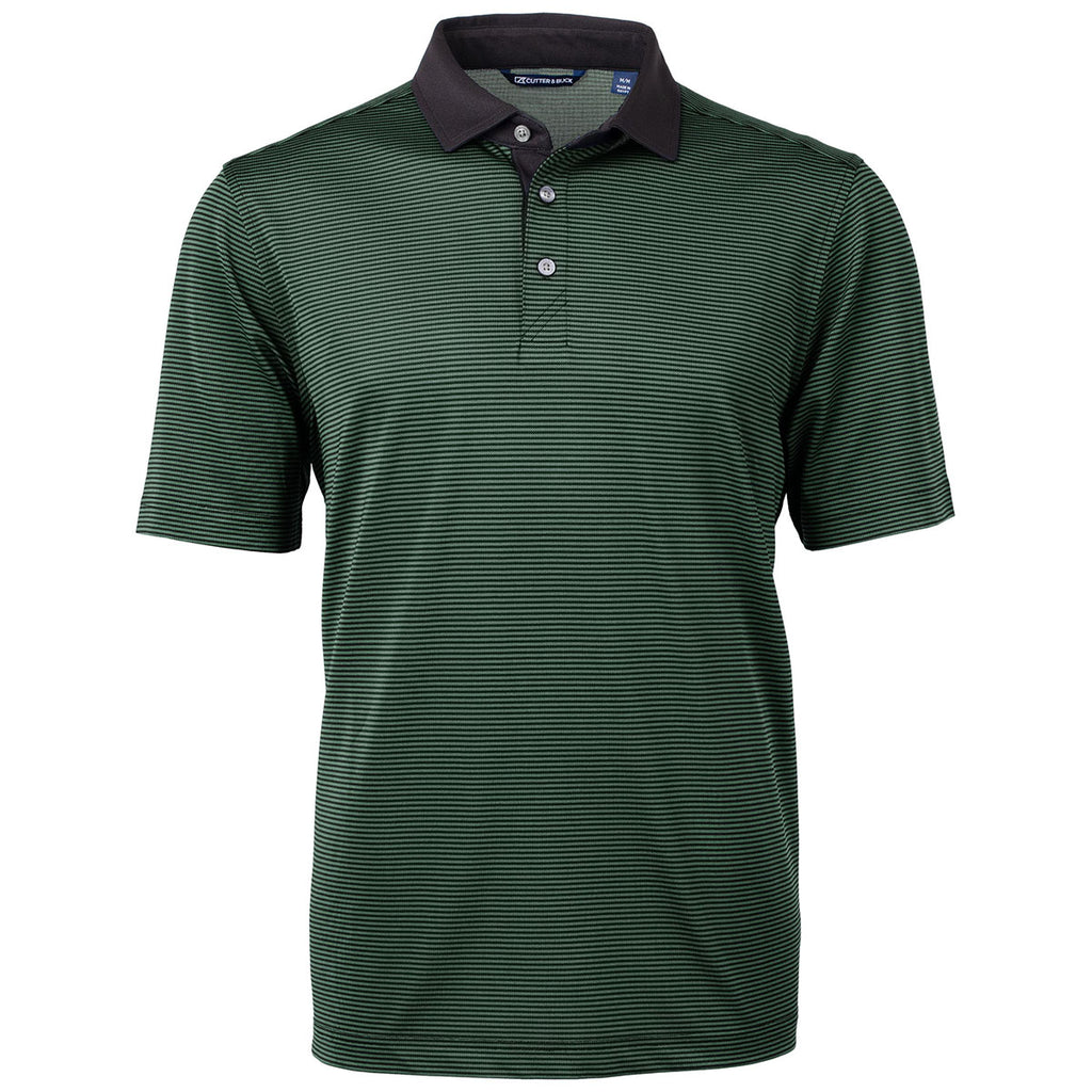 Cutter & Buck Men's Hunter/Black Virtue Eco Pique Micro Stripe Recycled Tall Polo