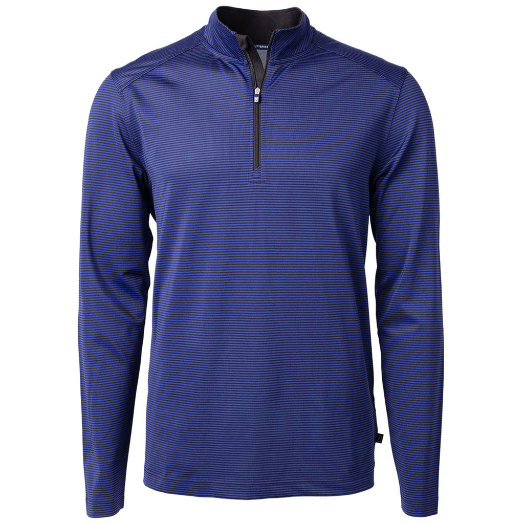Cutter & Buck Men's Tour Blue/Black Virtue Eco Pique Micro Strip Recycled Quarter Zip