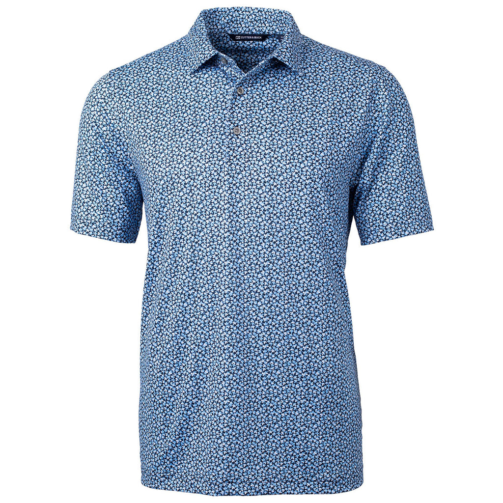 Cutter & Buck Men's Atlas/Navy Blue Pike Magnolia Print Stretch Polo