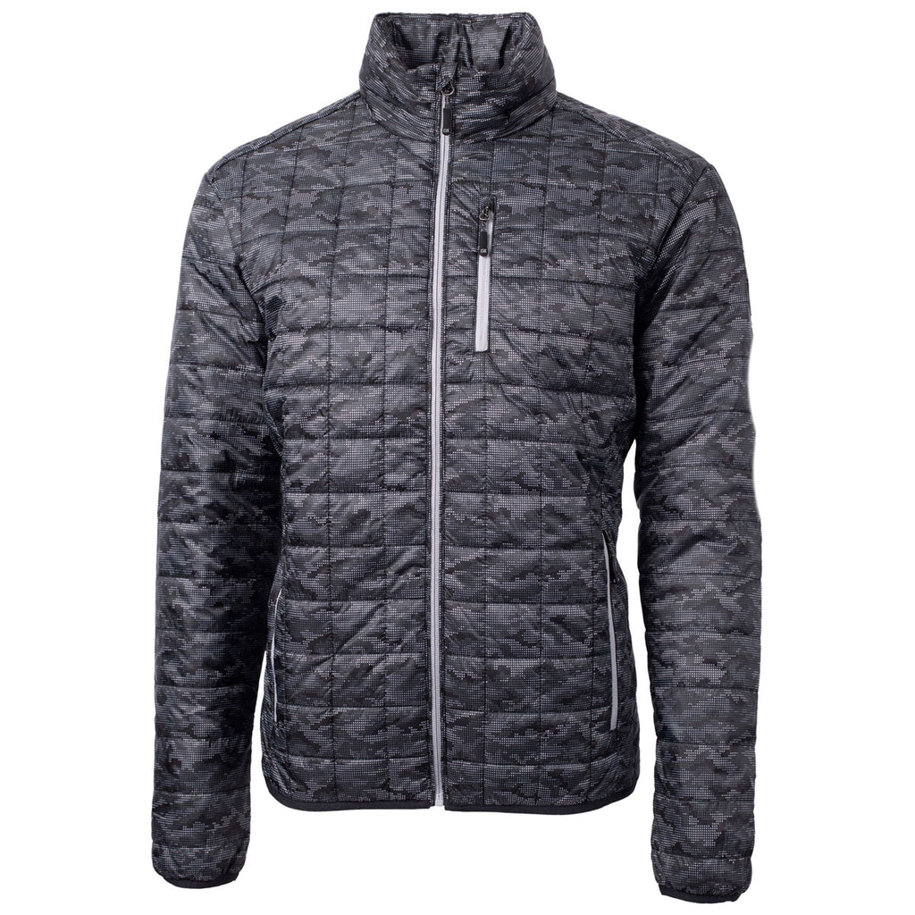 Cutter & Buck Men's Black Rainer PrimaLoft Eco Insulated Full Zip Printed Puffer Jacket