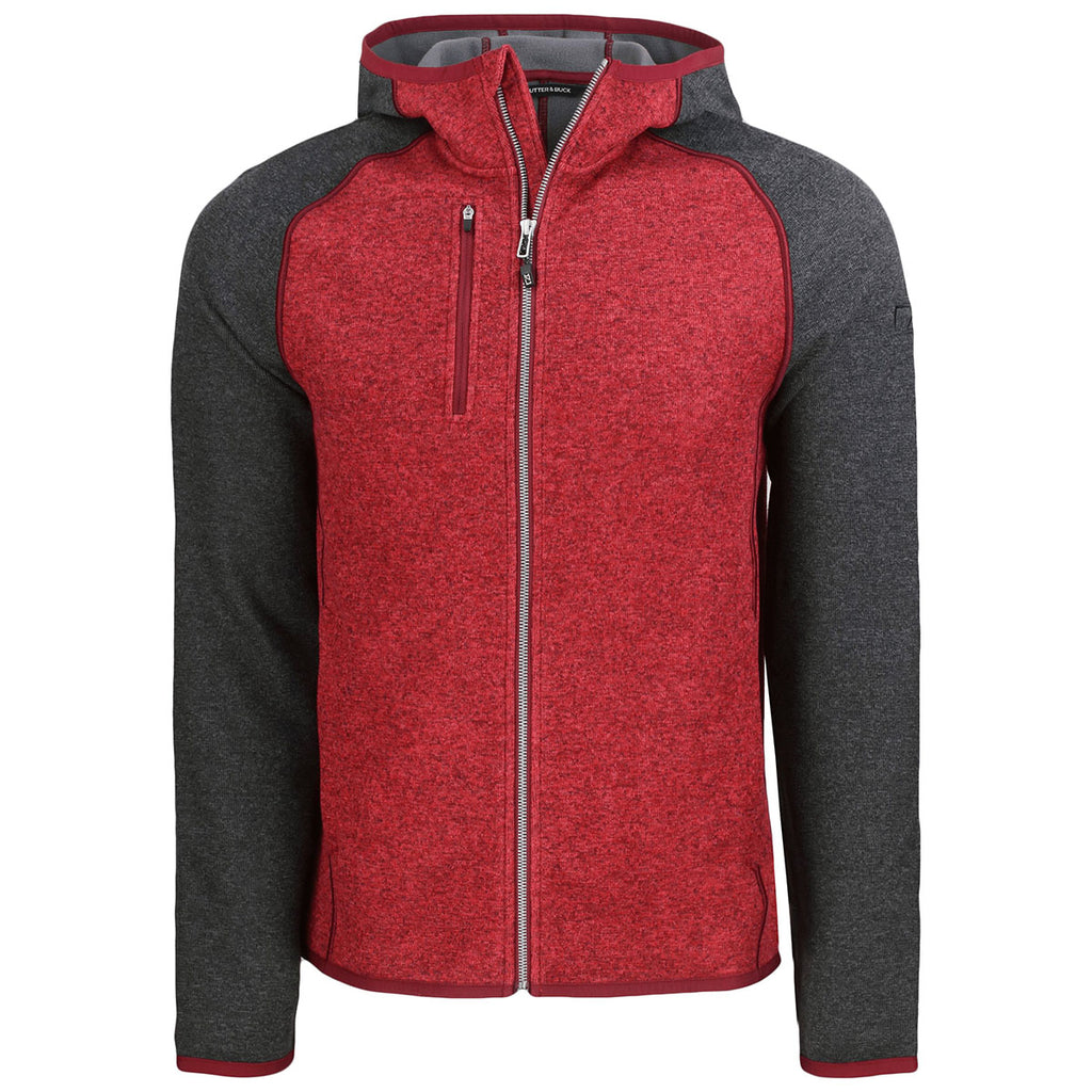 Cutter & Buck Men's Cardinal Red Heather/Charcoal Heather Mainsail Full Zip Hooded Jacket