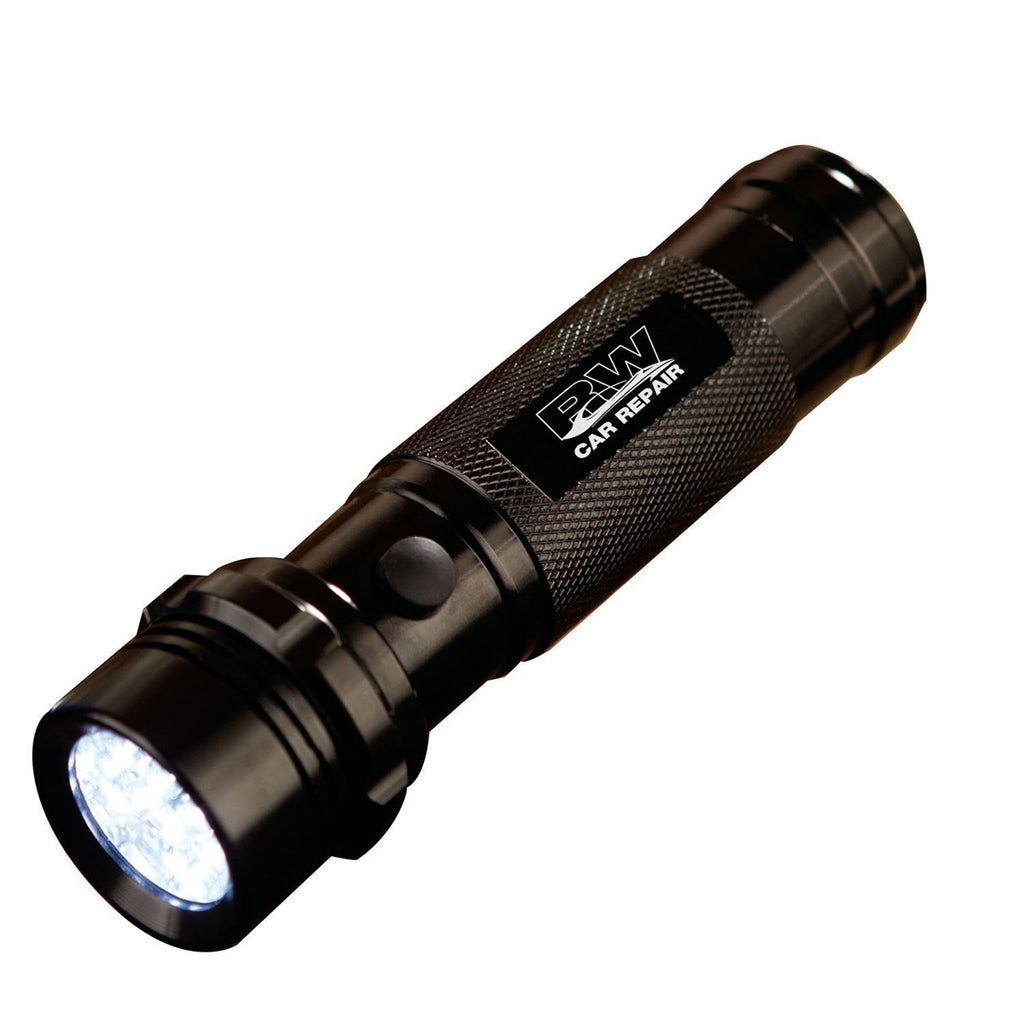 The minimum order for this product is 25 piecesA custom logo featured on the Innovations Black 14 Led Dura - Light flashlight is perfect for business branding or any of your corporate needs. The custom logo will be beautifully laser engraved on the front of the light. The perfectly handy, and durable flashlight is great for a professional users.