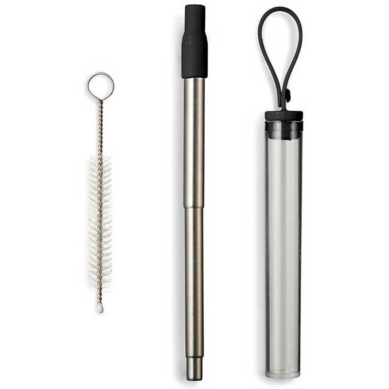 • Telescopic 304 Stainless Steel straw with Silicone spout is compact for using on-the-go