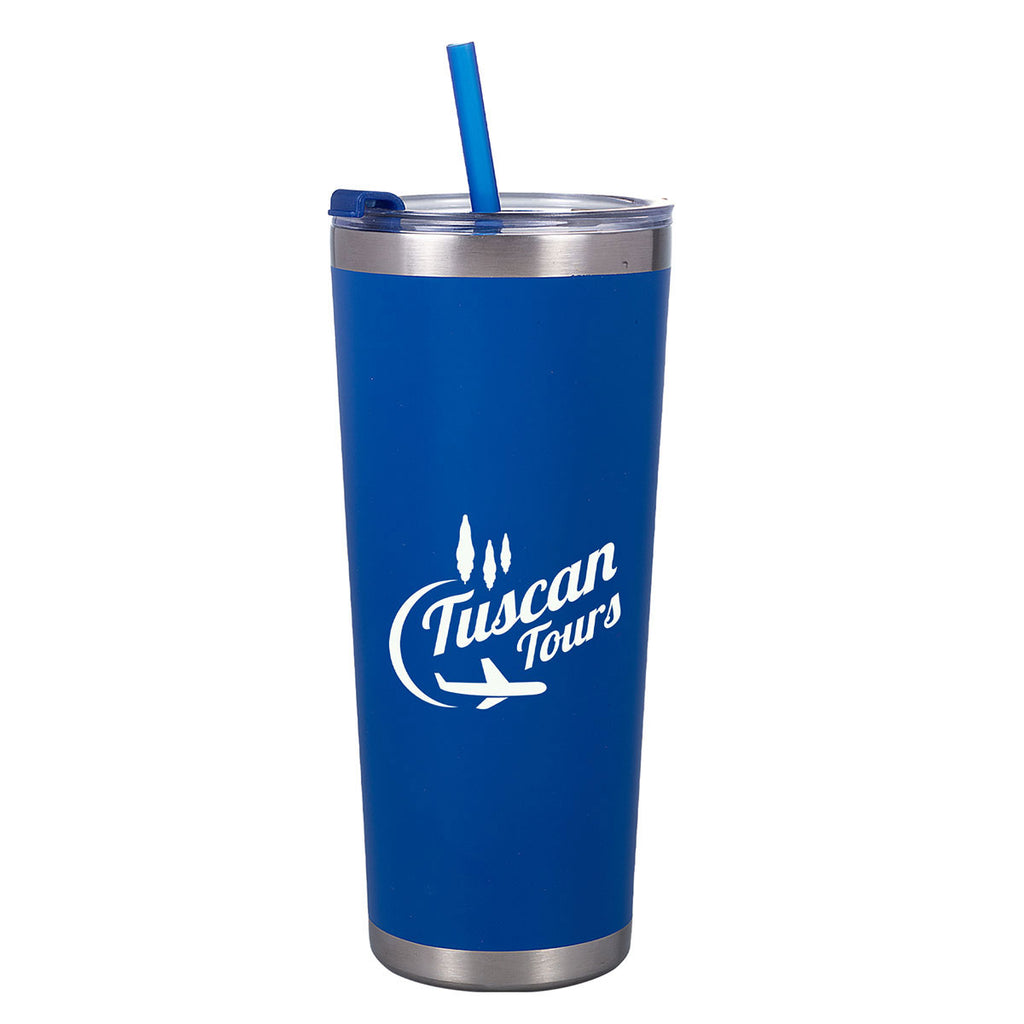 A stylish matte finish and bold color options makes the Primeline Reflex Blue 20 oz. All Season Vacuum Tumbler a perfect piece to show off your company's custom printed logo or design. It features double-walled vacuum insulation, which will keep the liquid inside at an ideal temperature all day long.The minimum order for this product is 25 pieces.