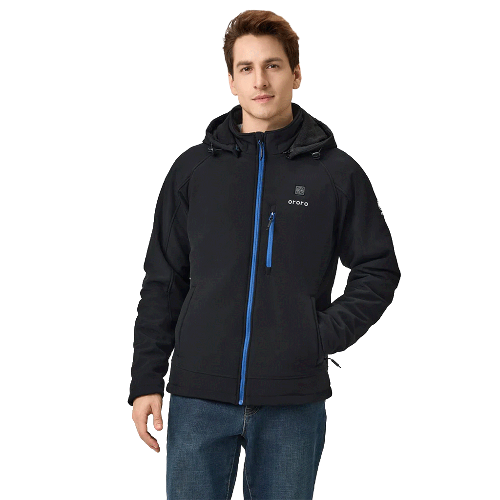Ororo Men's Black Paragon Classic Heated Jacket 2.0 - Blue Zipper