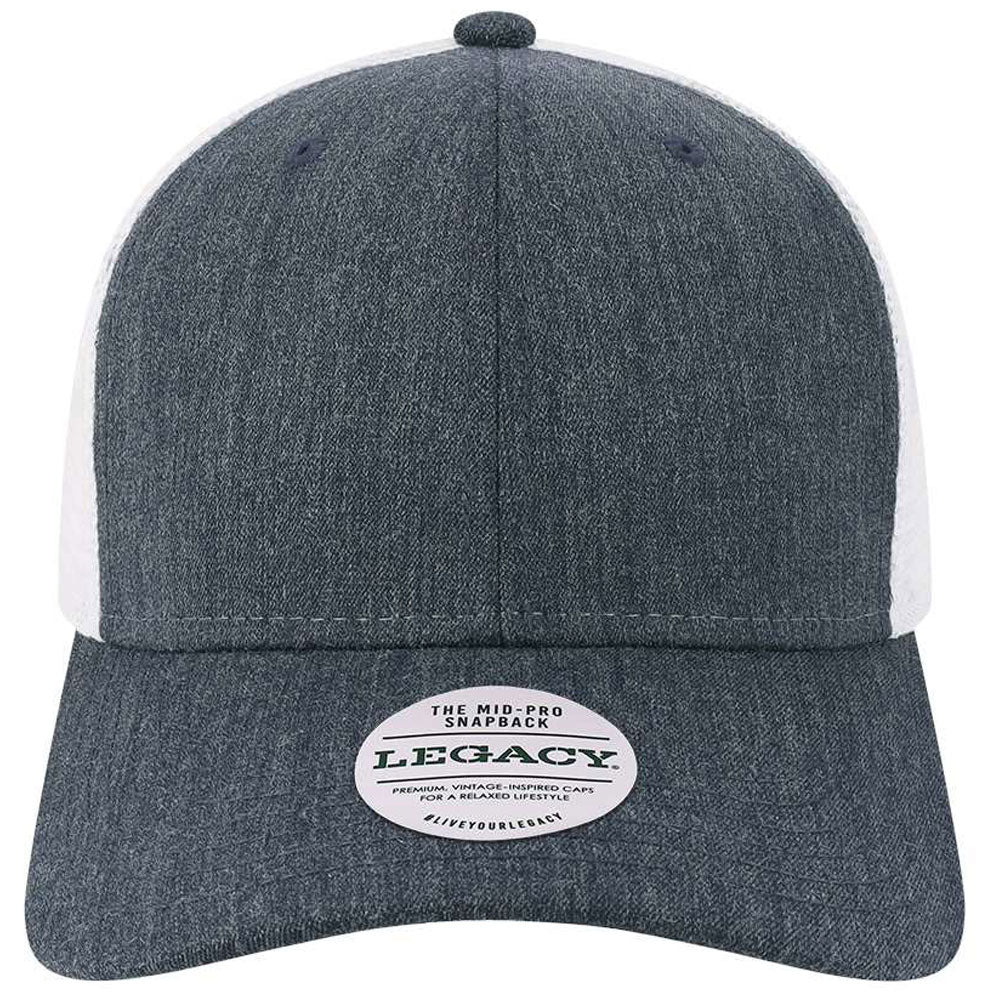 Legacy Melange Navy/White Mid-Pro Snapback Trucker Cap