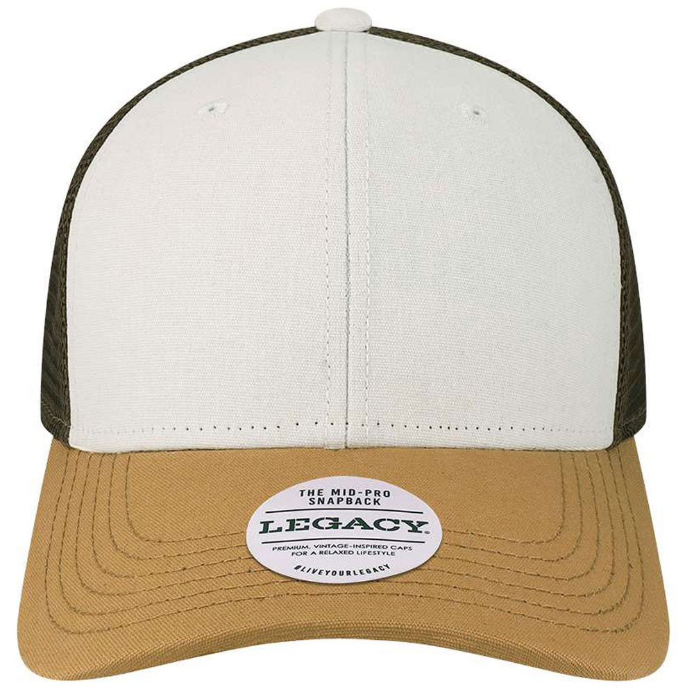 Legacy White/Caramel/Brown Mid-Pro Snapback Trucker Cap