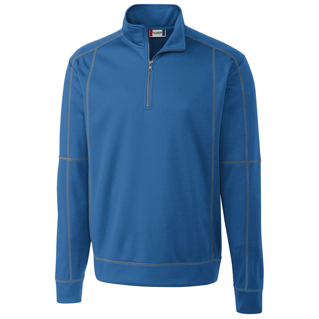 Put on company apparel for all social occasions by ordering the custom logoed Clique Men's Sea Blue Helsa Half Zip. Soft fleece lining feels smooth on the body and the exterior presents an attractive shiny appearance that gets you noticed at business seminars and conventions. Attach your corporate logo on the embroidery area to turn the attention into lifelong customers of your business. Moisture wicking technology ensures you remain comfortably dry throughout a daylong company sponsored golf tournament. Mock style neck complements the design of the smooth moving half zipper. Contrast stitching resists rips and tears to deliver years of high fashion performance.Corresponding Women's Style:Clique Women's Sea Blue Helsa Half Zip