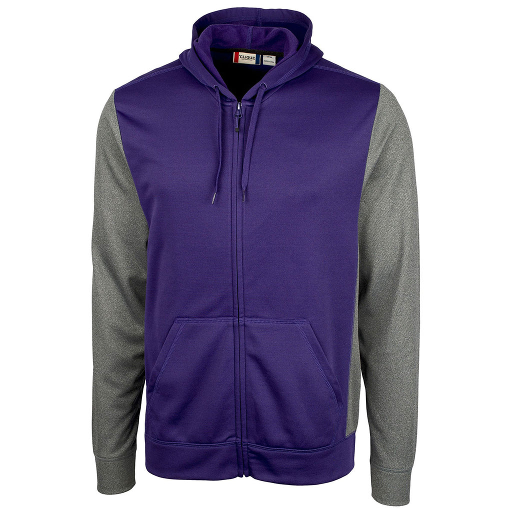 The Clique Men's College Purple Helsa Sport Colorblock Full Zip offers cozy comfort in a product you'll likely want to wear as often as possible. With a company logo added to the sweatshirt, you can advertise your company name and hand this out as employee apparel or to guests at corporate events. You have a variety of unique colors to choose from and you're sure to find the right color tone for your logo. Other features include a 100% polyester fleece material, attached hood with drawstrings, full zip closure, long sleeve cuffs in heather fabric, and dual pockets.Corresponding Women's Style:Clique Women's College Purple Helsa Sport Colorblock Full Zip