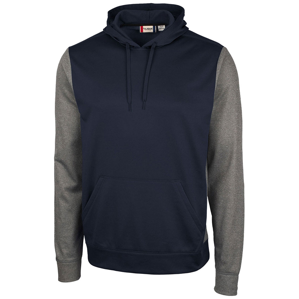 The Clique Men's Dark Navy Helsa Sport Colorblock Pullover combines fashion and comfort in one eye-catching pullover sweatshirt. With a custom logo added in screen print, you can turn this comfortable sweatshirt into an advertising product as well. Features include a variety of classic color options, 100% polyester fleece material, long sleeve cuffs in heather fabric, hood with drawstring, and kangaroo pocket. Purchase this item to use as prizes for corporate golf events or to hand out at recruiting events. You may want to buy some extra ones to hand out to your loyal employees, too.