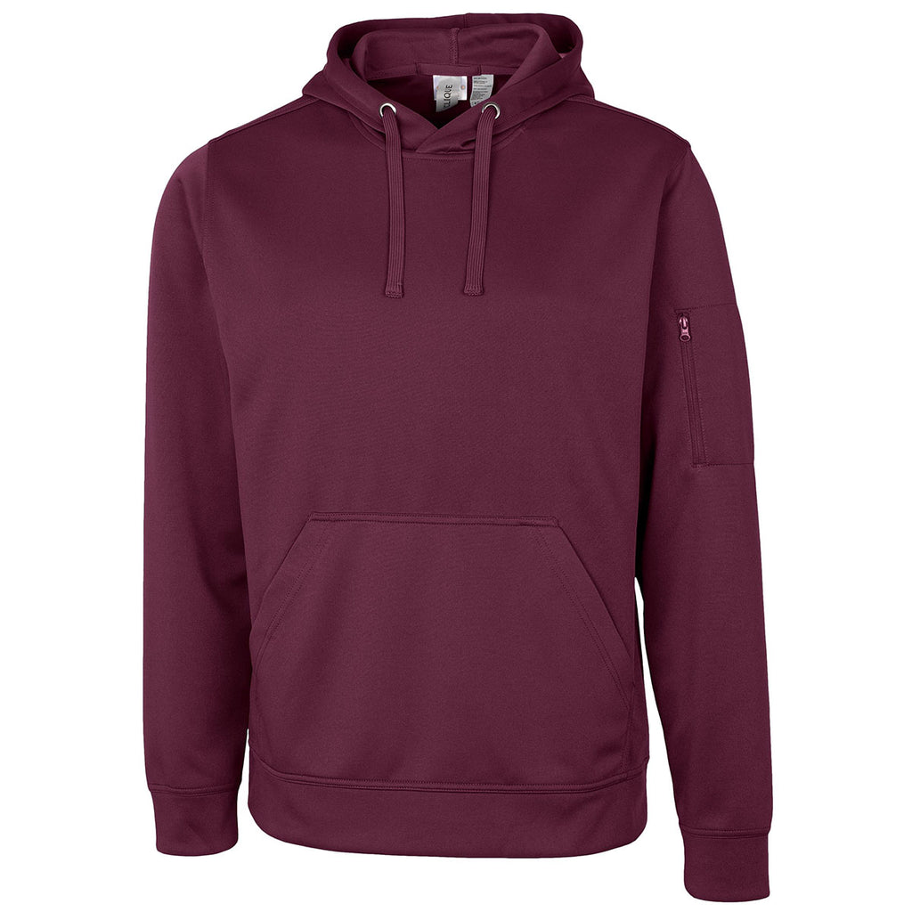 The Clique Men's Burgundy Lift Performance Hoodie Sweatshirt offers a stylish look and extreme comfort for the wearer to enjoy. With a company logo added in screen print, you can personalize this sweatshirt to show off your company name to the masses. Hand this corporate apparel item out at golf events or recruiting events or you can give it to your loyal employees as a gift. Some of the tempting features of this hoodie sweatshirt include a variety of classic colors to choose from, 100% polyester interlock fabric, attached hood with drawstrings, kangaroo pocket with interior cell phone pocket, left sleeve zip pocket, and self-fabric banded cuffs and hem.Highlights