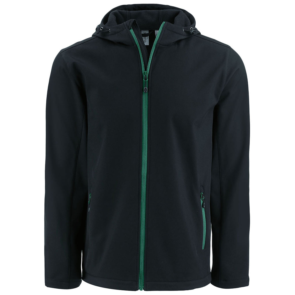 Clique Men's Black/Bottle Green Tempo Recycled Stretch Softshell Hooded Jacket