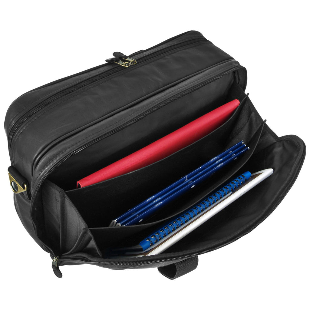 Mercury Luggage Black Faux Leather Multi-Pocket Attache