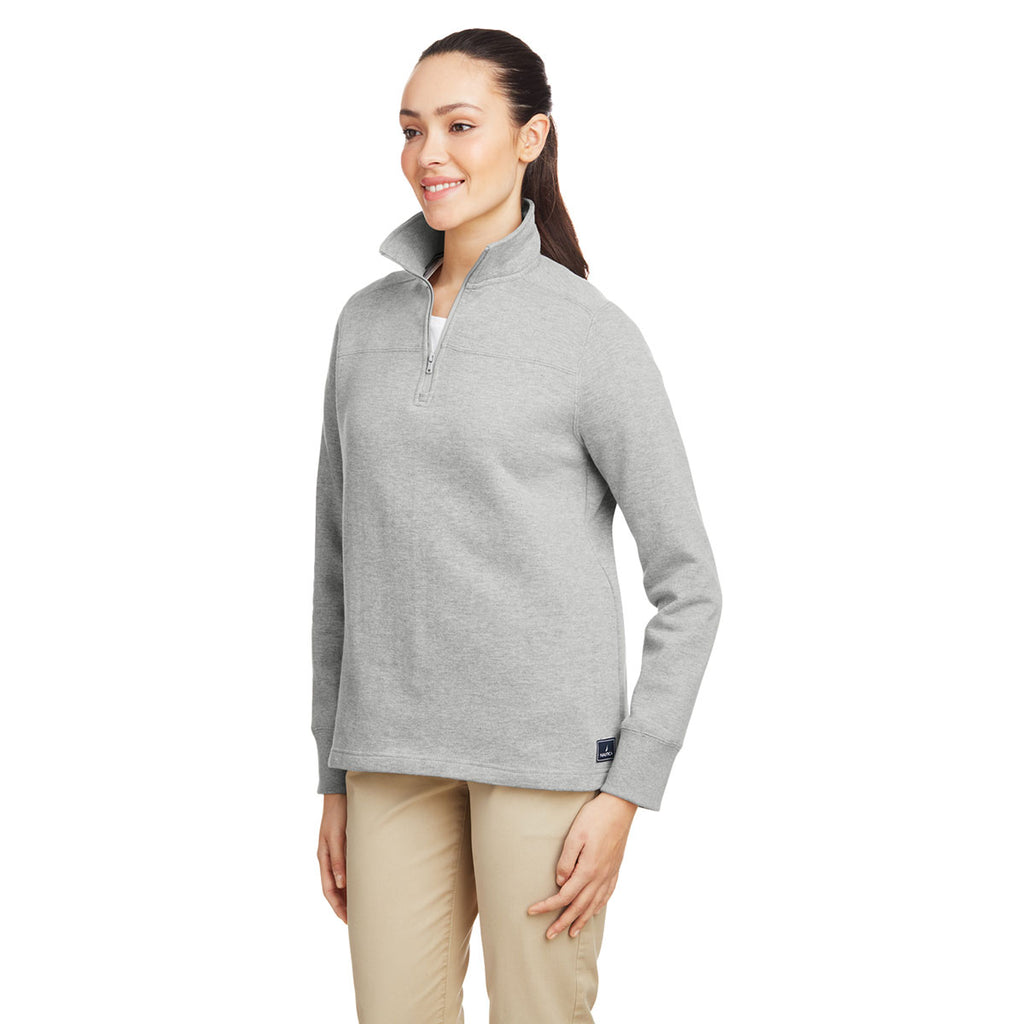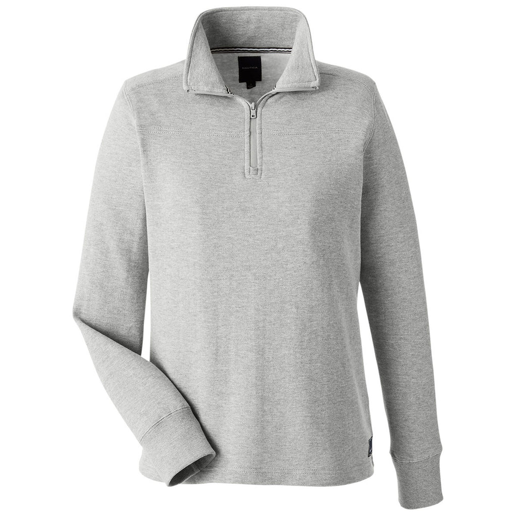 Choose a special embroidery for the Nautica Women's Oxford Anchor Quarter-Zip Pullover to use as personal wear or employee apparel for the cooler months. A simple quarter-zip that can be worn over almost anything, this cotton polyester fleece blend is soft and comfortable for all day wear. Add a company logo or something custom to create a look unique to your logoed apparel line or to add to your personal wardrobe. Ribbed cuffs and hem offer a better fit whether practicing on the driving range or out hiking with friends.