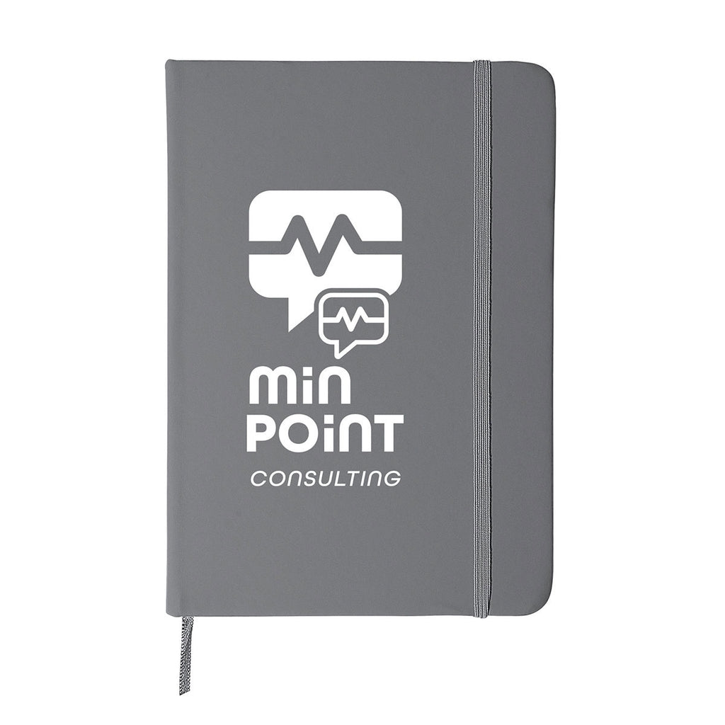 Your company's custom logo will make a statement when it's added to the front of this Primeline Grey Comfort Touch Bound Journal - 5" x 7". Available in a vibrant array of color options, this customizable notebook includes 80 lined sheets of paper as well as a ribbon bookmark to keep your place.The minimum order for this product is 100 pieces.