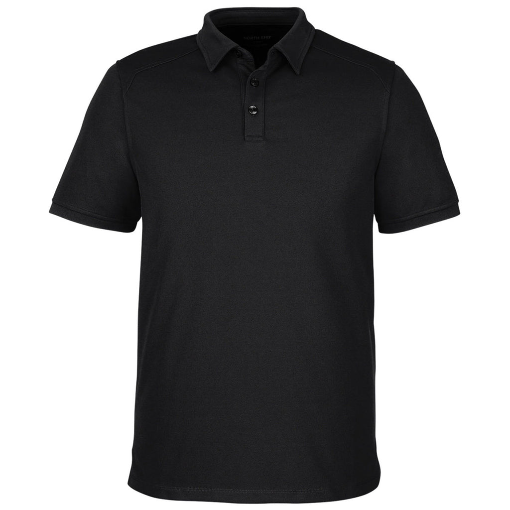 Design a custom logo for the North End Men's Black Express Tech Performance Polo to enjoy a versatile polo ready for whatever your day holds. Made of sustainable materials in a midweight fabric, this polo is moisture-wicking, thermally regulating, and UV-protection, making it great for golf, work, and hanging out. Place an order today.Corresponding Women's Style: North End Women's Black Express Tech Performance Polo