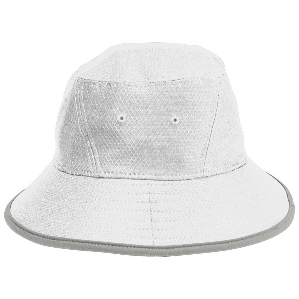 Enjoy the great outdoors in a custom heat-transferred New Era White/Rainstorm Grey Hex Era Bucket Hat. Made of 100% polyester, this hat makes a statement while keeping you protected. The SOLARERA 50+ UV protection means your face is protected from the sun while allowing you to still enjoy. Also equipped with MICROERA odor controlling technology and COOLERA sweat wicking, this hat can be heat-transferred with your custom logo to use for any need you have. Add a corporate logo to use as employee gifts that can be worn with pride. The unstructured hat has an adjustable drawcord and clip on to keep it secured even when active.