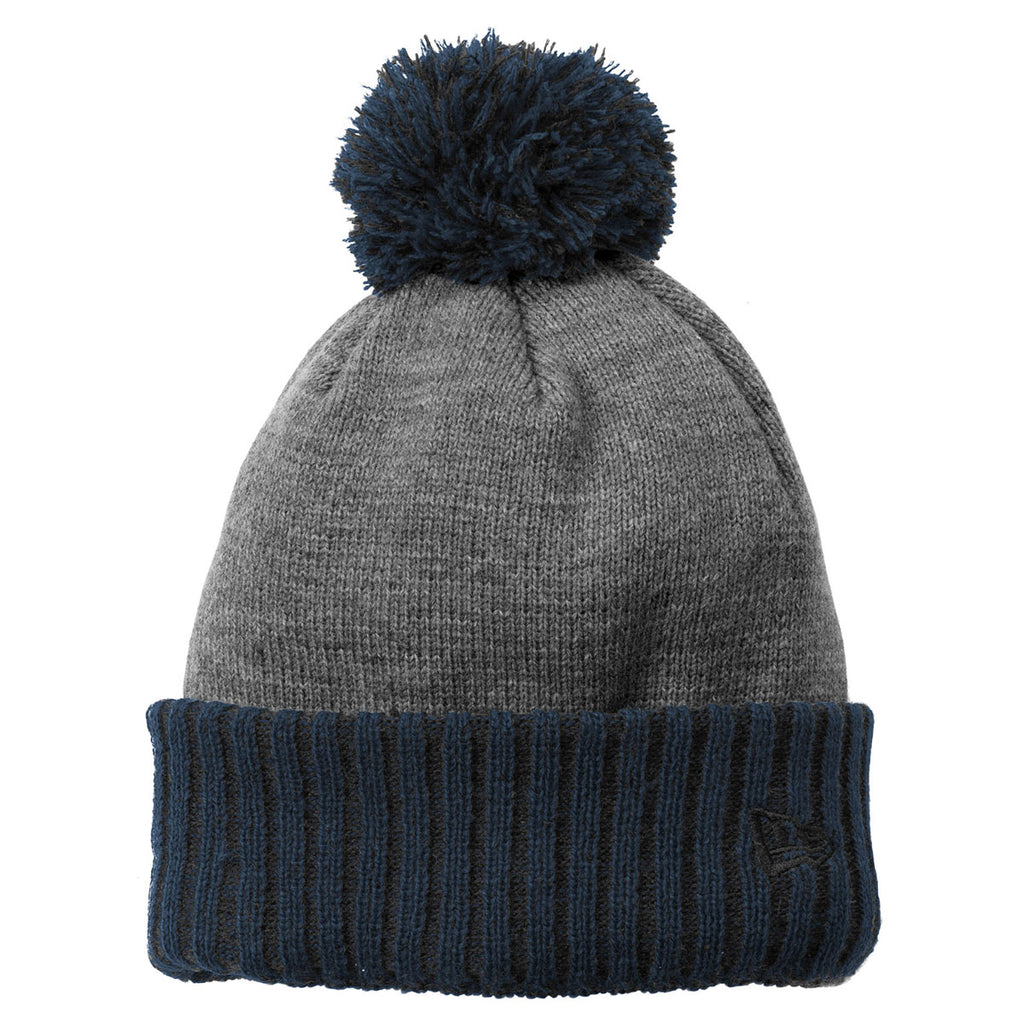 With a thicker gauge cuff presenting rich color, the custom logoed New Era Navy/Heather Grey Colorblock Cuffed Beanie is the perfect new employee gift bag stuffer. The dual colored pom allows you to pair the beanie with a wide variety of company apparel. The lining consists of 100% polyester to trap warmth released from the body. The rugged acrylic shell resists the types of rips and tears that turn other styles of beanies into shredded fabric messes. Attach your company logo on the cap to shine the spotlight on the products and services offered by your business.