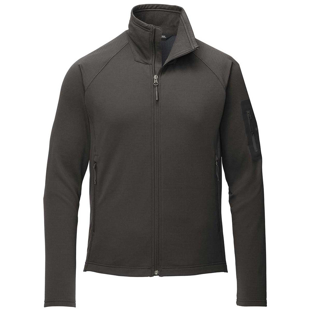 Hit the gym, trails, park or office in a custom embroidered The North Face Men's Asphalt Grey Mountain Peaks Fleece Full-Zip Jacket. The sleek design is both stylish and functional with stretch fleece, a squared collar, and raglan sleeves. Add a company logo to use these as warm up gear at team events or a corporate embroidery to use for end of the year gifts that everyone will love. The center front zipper and pocket zippers are reverse coiled for a clean look that cannot be matched. The midweight fabric helps control body temperature weather walking to work or enjoying an early morning stroll through the park.