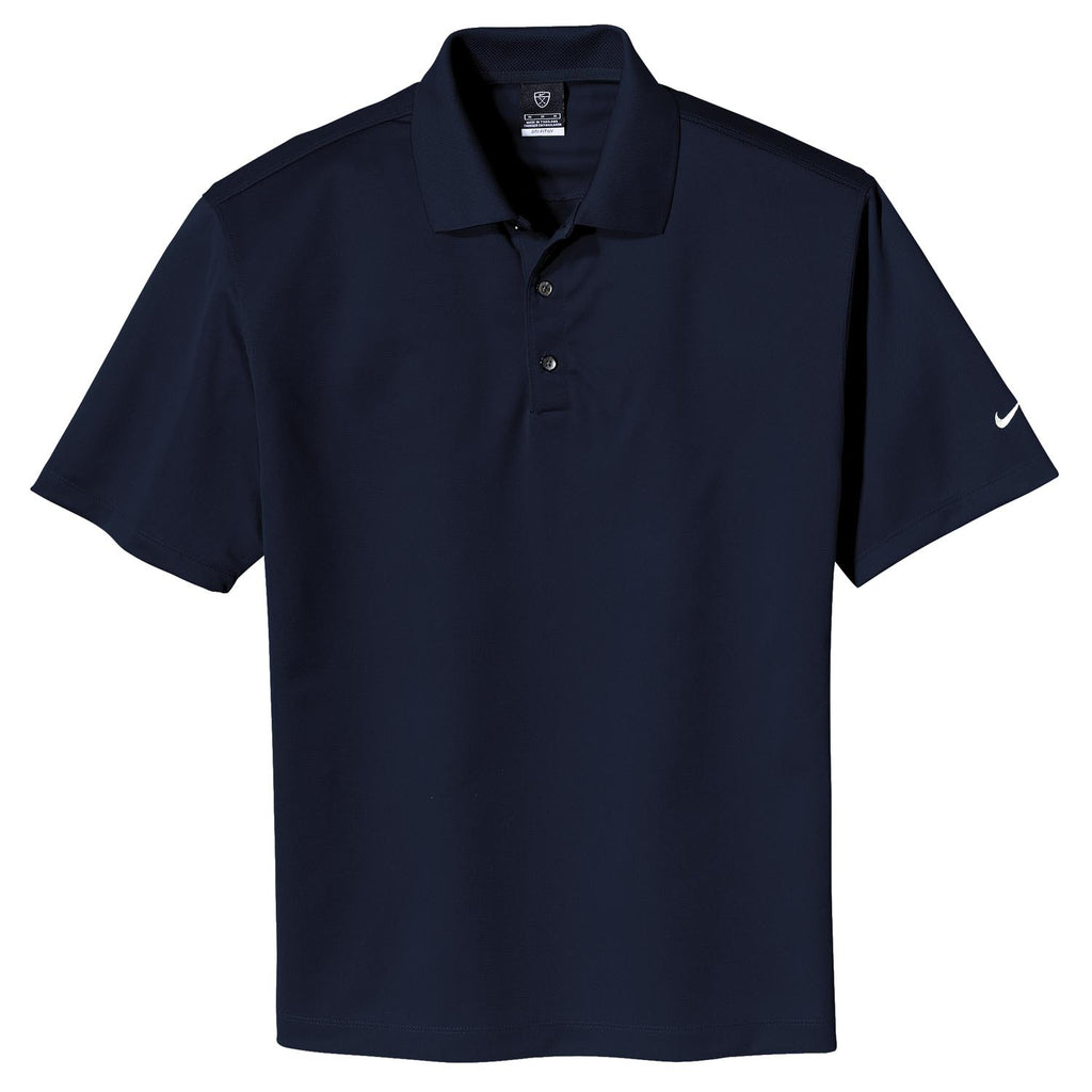 The Nike Men's Navy Tech Basic Dri-FIT Short Sleeve Polo may just be the gold standard in golf polos. Great quality, simple (yet bold) design, and at an affordable price. Additionally, it can easily be incorporated into every man's current wardrobe. Details of this men's shirt include Nike Golf's Dri-FIT moisture management technology, a knit collar, 3-button placket, and pearlized buttons. The Nike Golf Navy Tech Basic Dri-FIT Polo is available in a variety of great colors, so you'll have no trouble finding the right fit for your company or event.