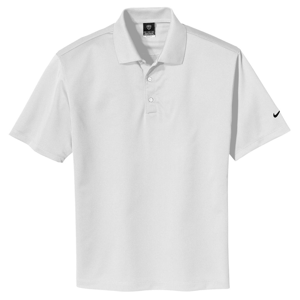 The Nike Men's White Tech Basic Dri-FIT Short Sleeve Polo may just be the gold standard in golf polos. Great quality, simple (yet bold) design, and at an affordable price. Additionally, it can easily be incorporated into every man's current wardrobe. Details of this men's shirt include Nike Golf's Dri-FIT moisture management technology, a knit collar, 3-button placket, and pearlized buttons. The Nike Golf White Tech Basic Dri-FIT Polo is available in a variety of great colors, so you'll have no trouble finding the right fit for your company or event.