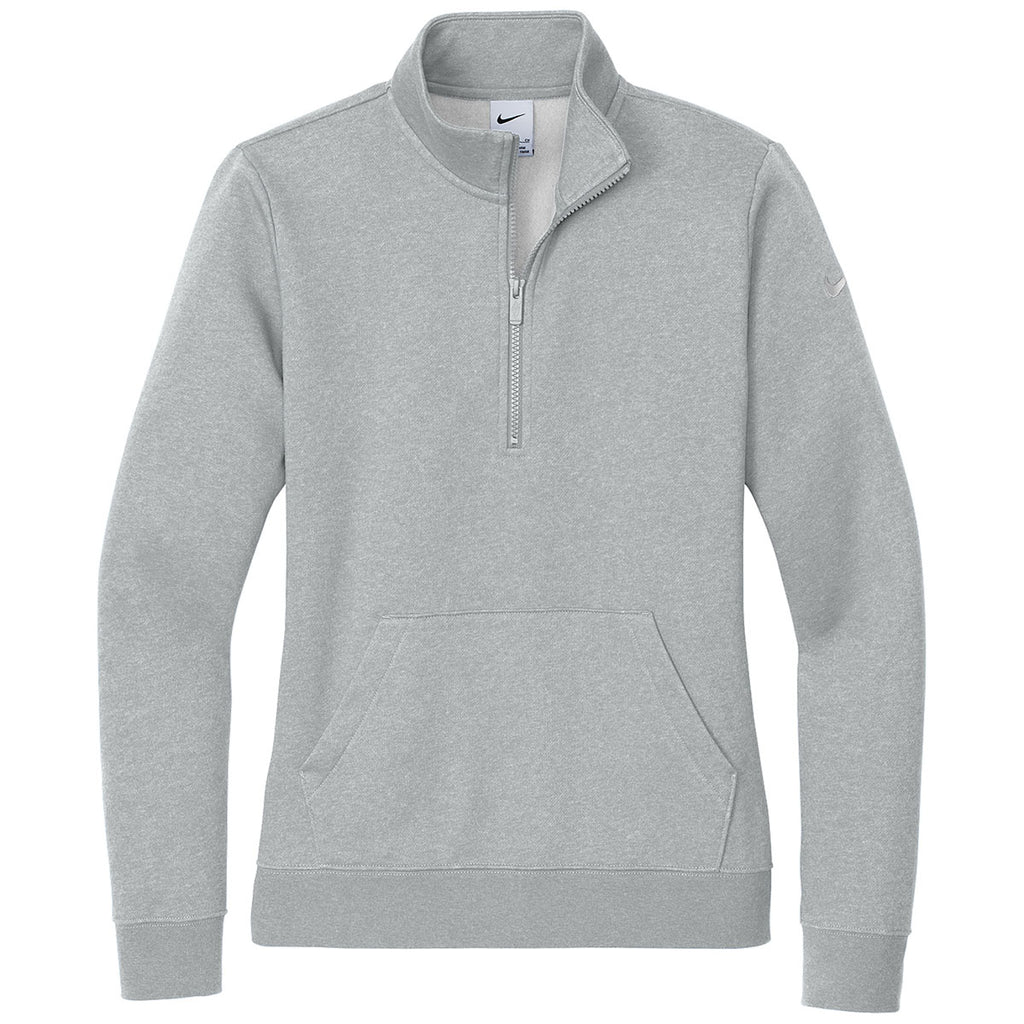 Nike Women's Dark Grey Heather Club Fleece Sleeve Swoosh 1/2 Zip with a custom logo is a must-have for the active women in your life. This versatile 1/2 zip with Nike swoosh is ideal for those who like to get in an early game of golf, tennis, or a jog, but also for those with a busy day that just need a simple layering option. Place an order today.