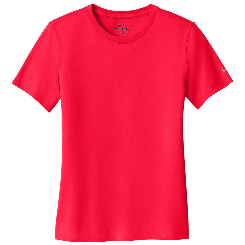 Nike Women's University Red Swoosh Sleeve rLegend Tee with a custom logo is the stuff legends are made of. This sustainable material with Dri-FIT technology means you will gain peak performance with a lower environmental impact. Great for employees who have to work their hardest each day or your team that needs to be on top of their game. Place an order today.